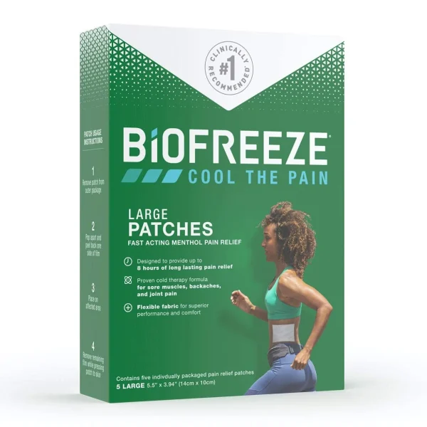 - The Biofreeze Patch is the newest innovation in Pain Relief, giving up to 8 hours of long-lasting Pain Relief in a pack of five 5.5″ x 3.94″ patches